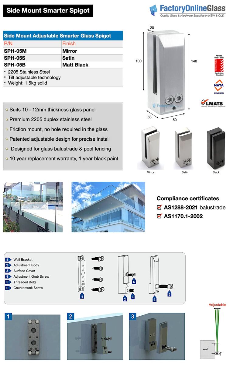 Perfectly pair these panels with our adjustable Side Mount Spigots & Handrails for a compliant architectural finish.